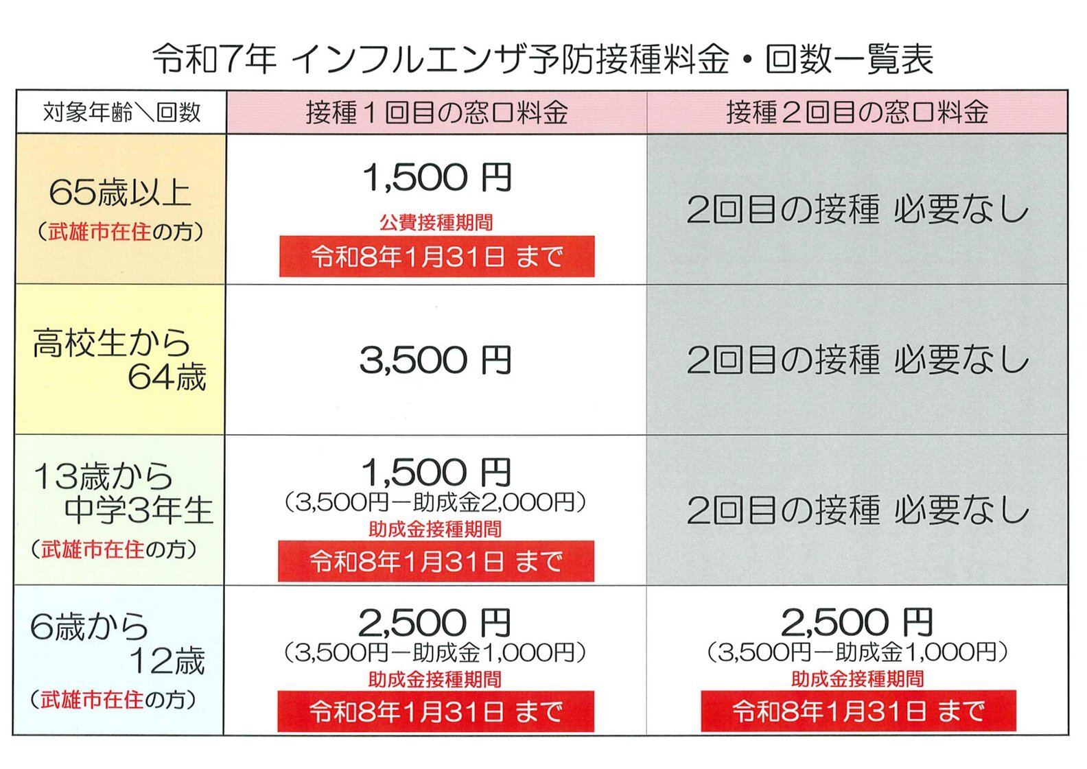 0歳~中学3年生までは接種料金の一部が助成されます。また、65歳以上の方は接種料金の一部が公費負担となります。